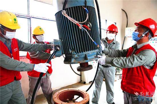 原200千伏安的變壓器被吊下配變臺架,新調(diào)來的315千伏安的變壓器平穩(wěn)地落座在配變臺架上……通過近4個小時的安裝、調(diào)試,接通10千伏千畝湖支線等一系列的緊張作業(yè)。19時02分,2臺先期安裝好的55千瓦的水泵成功發(fā)起,兩股水流沖出千畝湖,流向遠(yuǎn)方。
