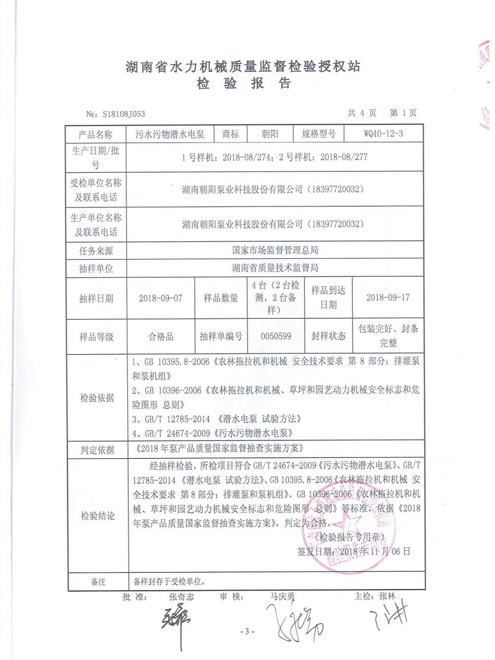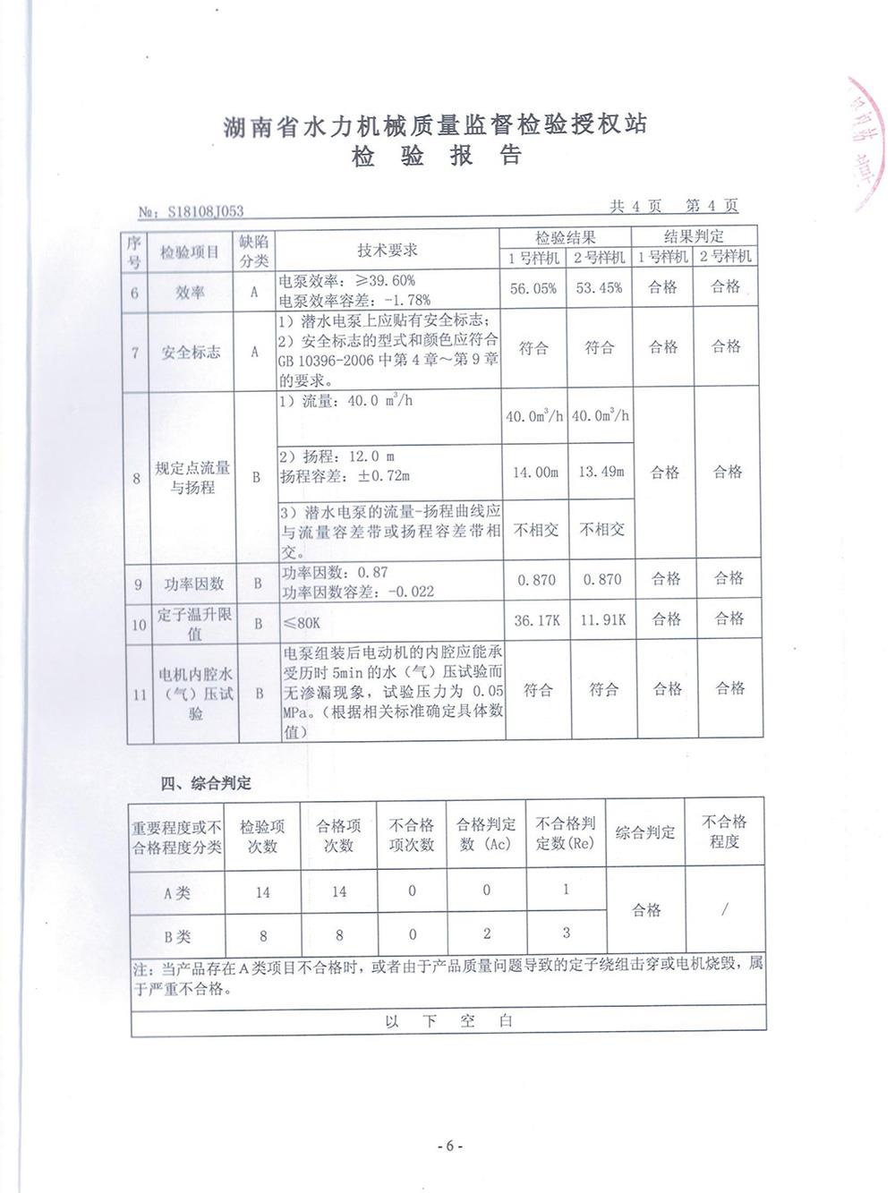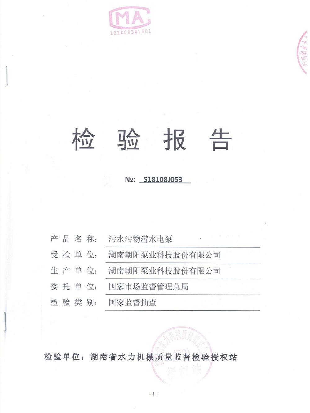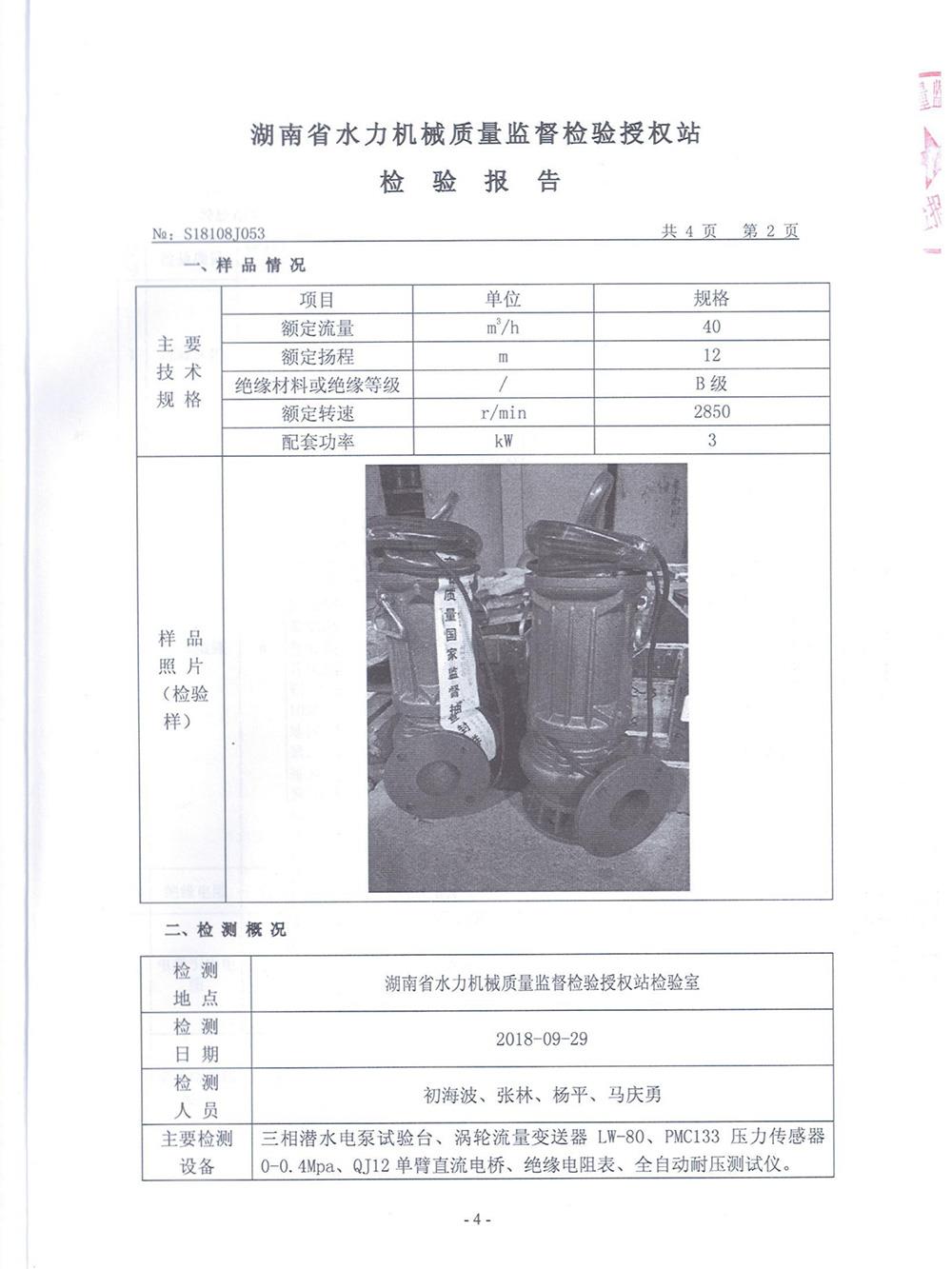湖南省水力機械質量檢驗報告